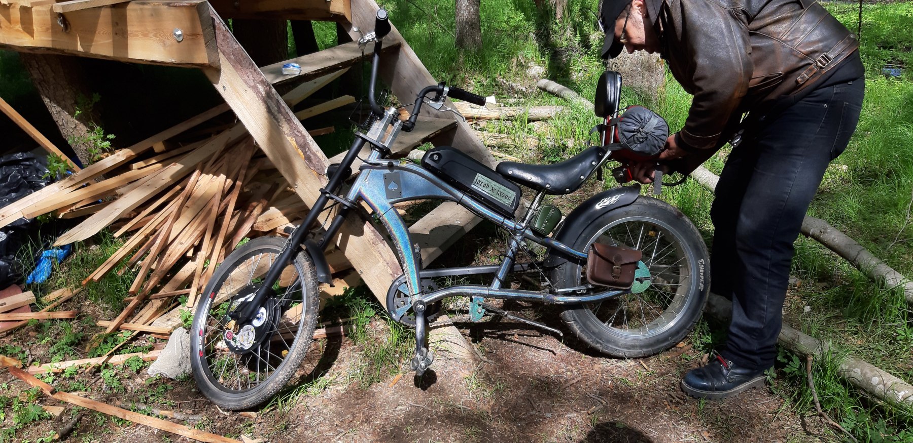Kolem deváté dosahujeme stanovené kóty a začíná klasické chystání noclehu, rozdělávání ohně a to vše za vydatné podpory zásob baru. U ohně vysedáváme dlouho do noci, a libujeme si, jak je dobře, že jsme zase jednou vyšli. Večer se k nám přidává chlapík na elektrokole-chopperu z vedlejší dědiny. Tak chvilku vykecáváme a obdivujeme ten jeho pekelný stroj.