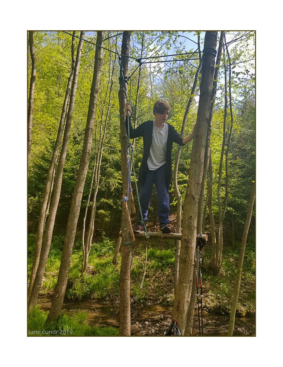 „Děti“ máme tentokráte jenom tři, zato se k nám přidává Hofmanovic Gabča – psisko první pomoci. Výšlap má tudíž urovnanější tempo a můžeme si dovolit nataženější pauzy na nutné doplnění paliva. V plánu je dojít na Lesní Bar u Jarka, kde přenocujeme. Ve Vítovicích se k nám přidává na vlastní pěst klučík na speciální tříkolce, kterého ovšem na Kalečníku obracíme zpět protože už je ceklem daleko od domova a pomale se začíná šeřit.