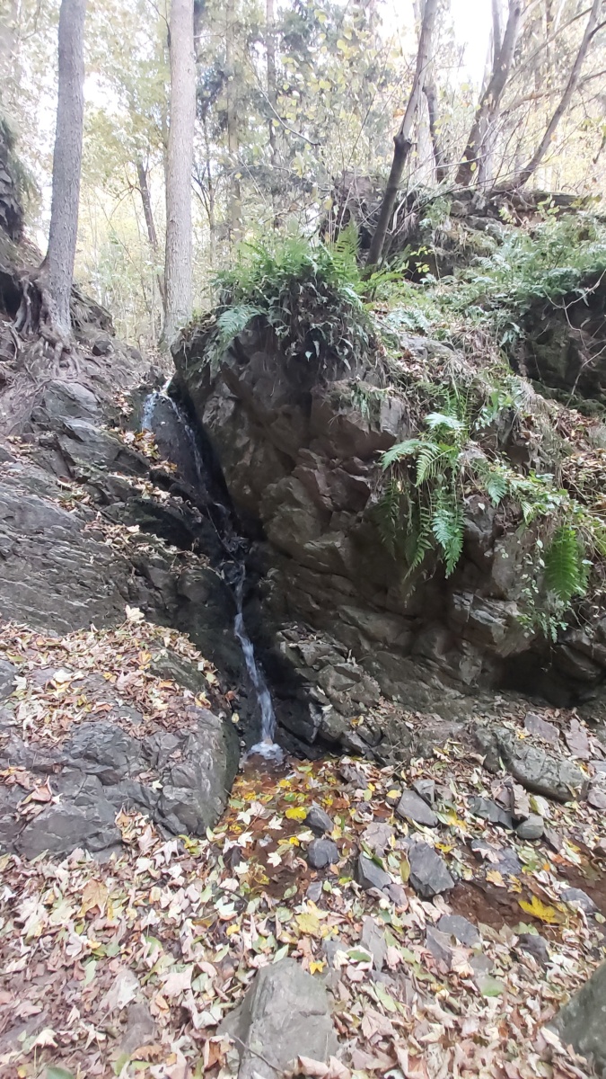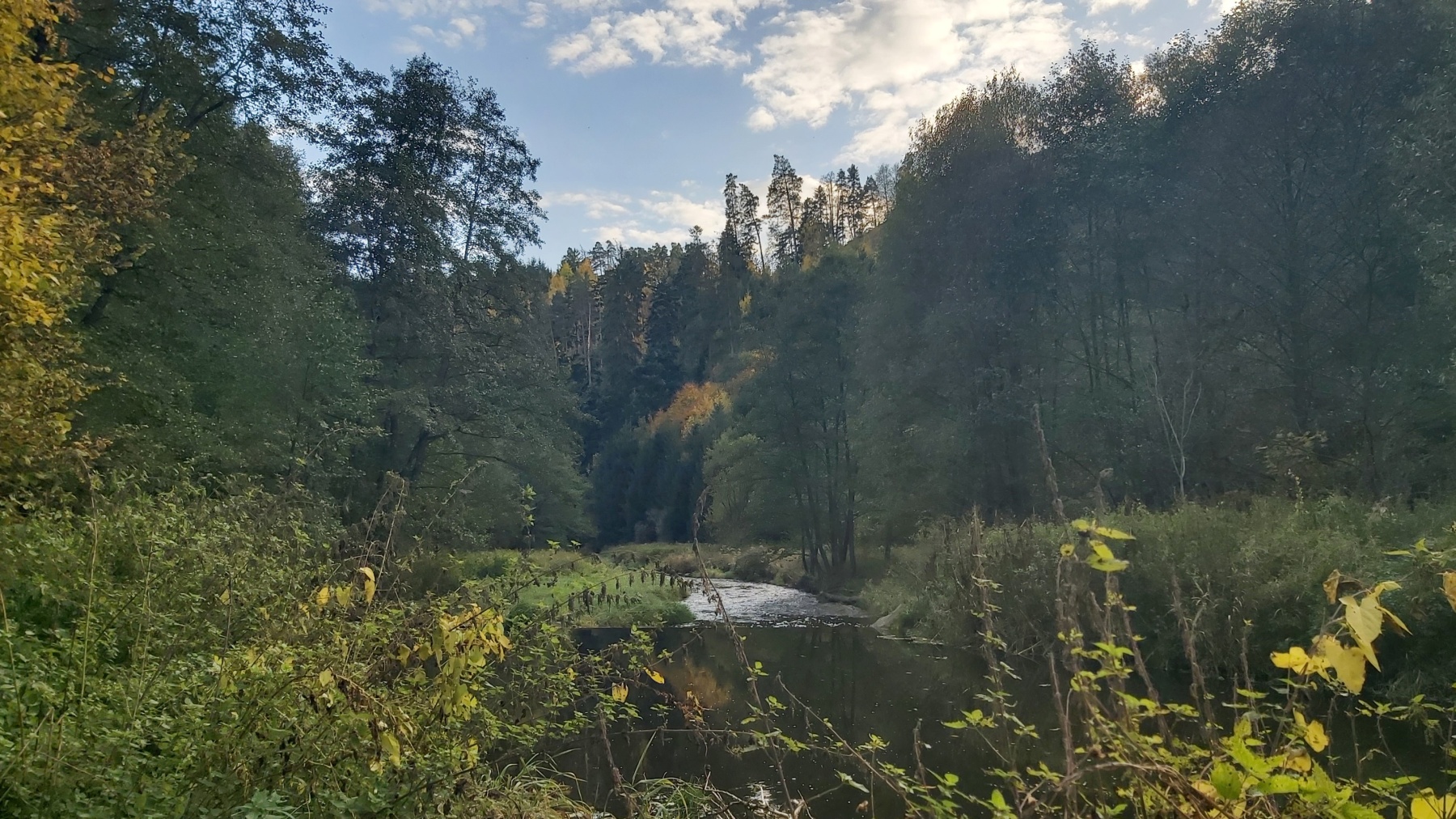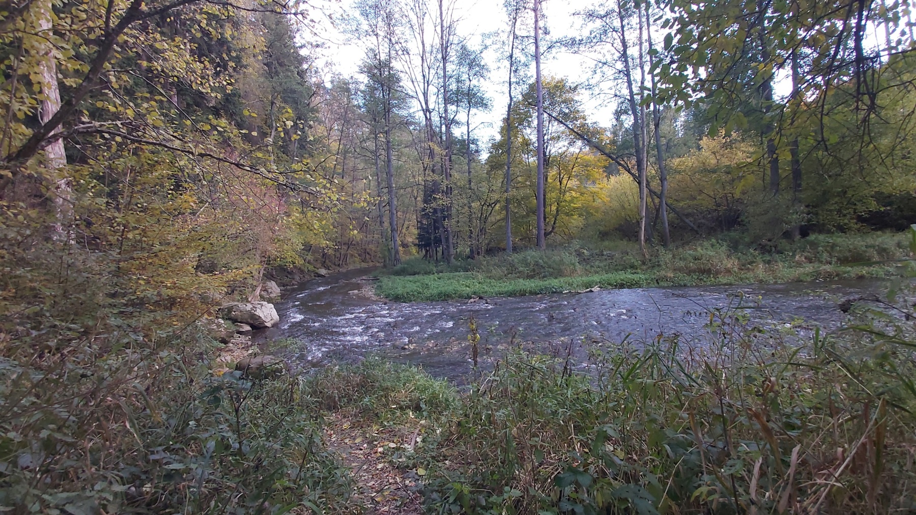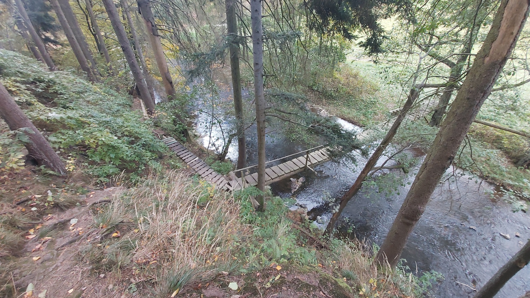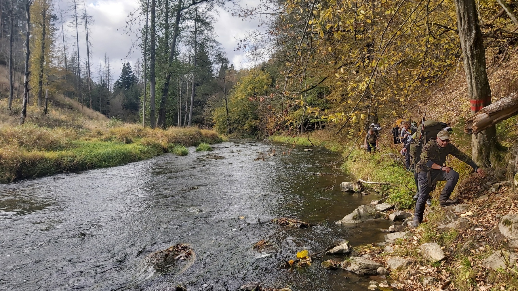 Po příchodu Hvozdíků vyrážíme. Čeká nás nejzajímavější úsek celého vandru. Začíná to tím, že jednou špatně odbočíme, což je ale ve finále k dobru, protože se nám otvírá pohled na údolí, říčku i chatičky nad ní. Abychom mohli pokračovat, musíme ovšem sejít ze svahu divočinou zpátky na stezku. Míjíme Habří a za chvilku jsme u Mariiny studánky. Tempo máme parádní, takže nám nevadí časté zastávky na focení a kochání. A je opravdu čím.