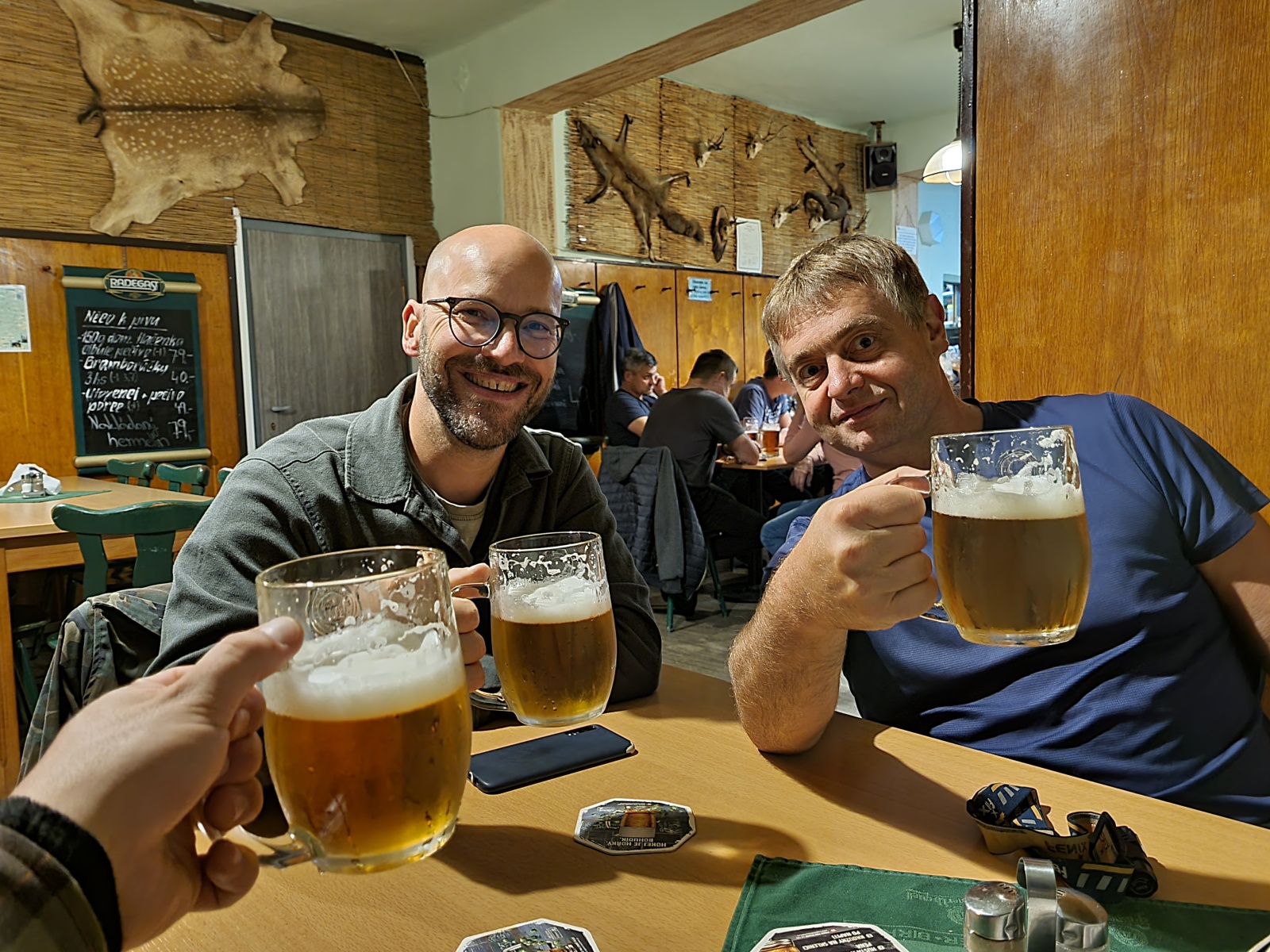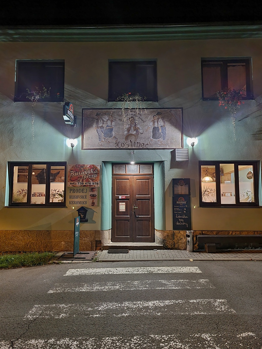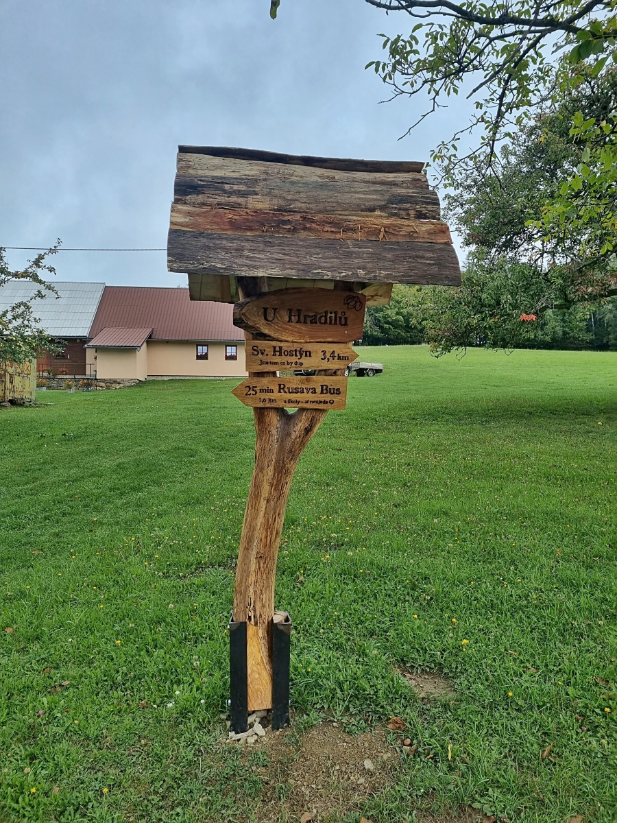 Nasazujeme batohy a čeká nás 6 kiláků na Rusavu. Počasí je akorát a tak šlapeme po nepohodlné silnici. V Brusném zastavujeme a zjišťuju, že za 11 minut nám jede bus, který nám zkrátí zbylé nepohodlné asfaltové kiláky. Radim toho využívá a briskně donáší tři kelímky piva. Vtipkujeme s milou cyklistkou, která se jela uklidint na pivo a po chvilce už exujeme kelímky, protože bus je tu. Do Rusavy přijíždíme o půl sedmé a jsme za to rádi. Rozbalíme bivak ještě za světla a pak hurá do hospody. Zabydlujeme se na terase chatky a připravujeme si proslov pro případné uvědomnělé sousedy. Po převlečení do suchého mažeme do Zelené hospody.