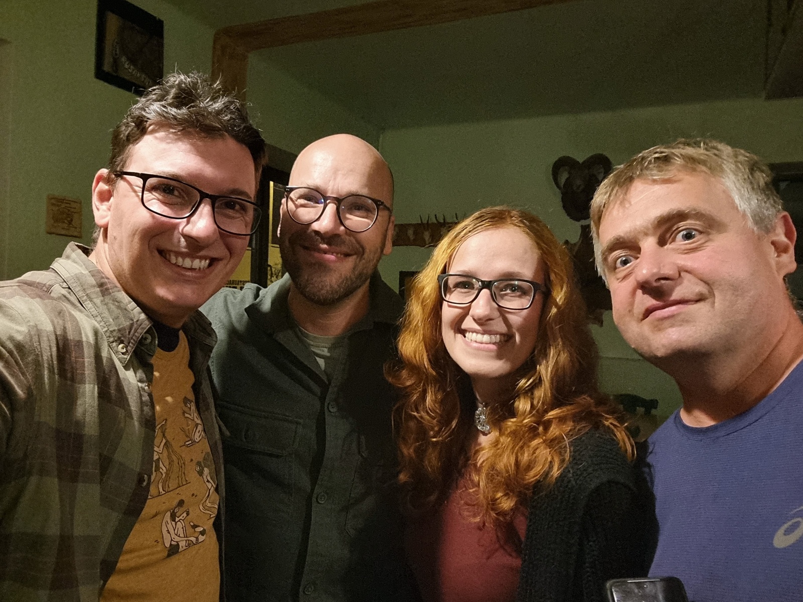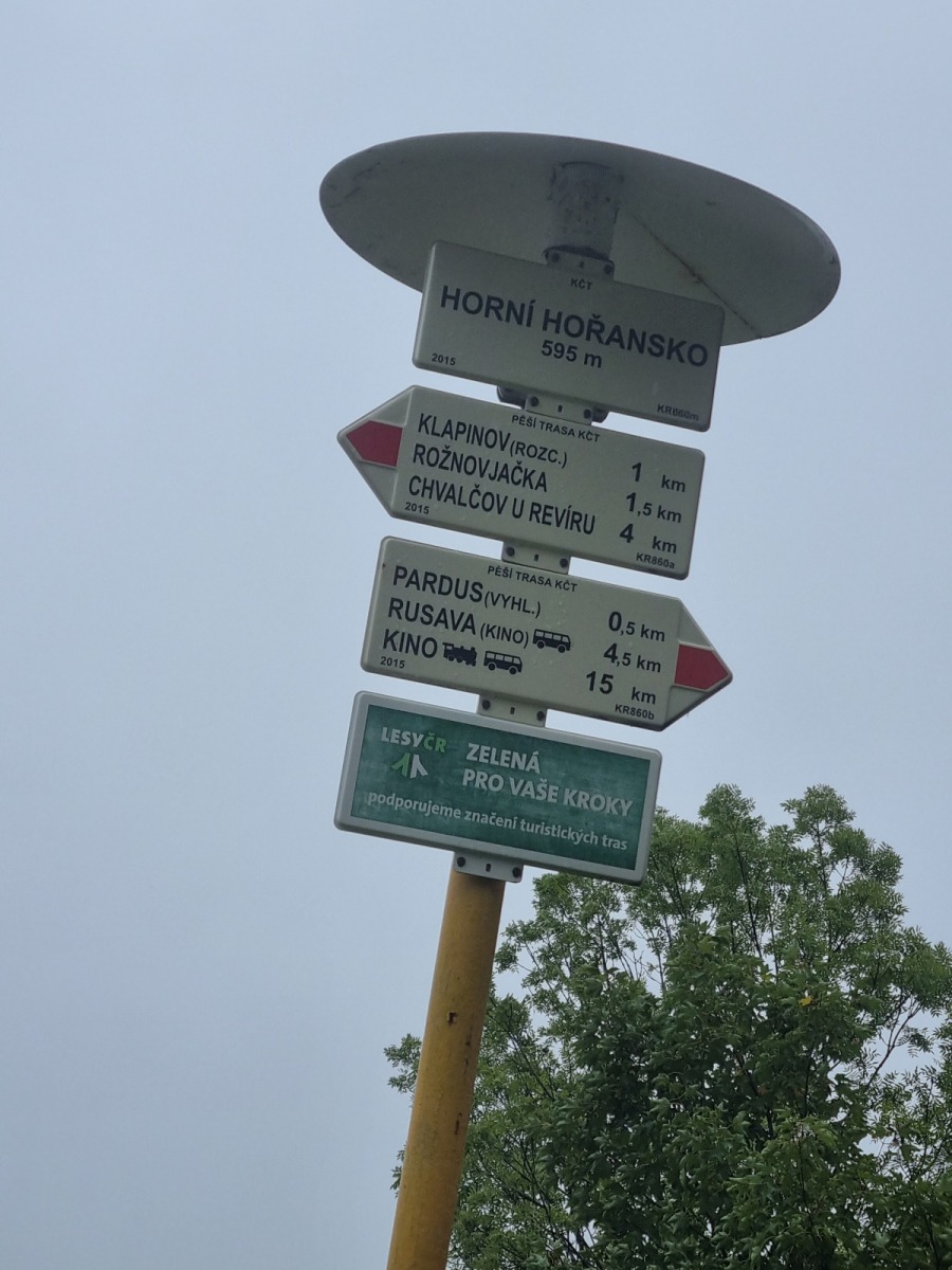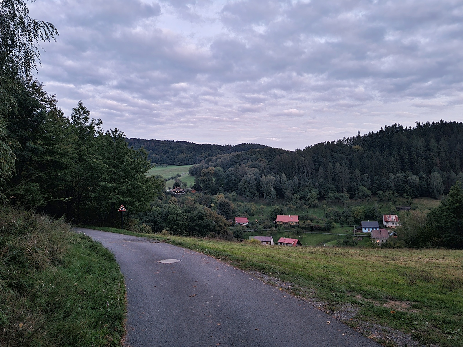 Míříme po červené, abychom se od ní kousek za Pardusem odchýlili po neznačené dolů. Hofeci nás navigují na krátkou zastávku ve Oneness centru, kde absolvovali seberozvojové aktivity. Díky známosti nám tam vydyndali kávičku, která nám přišla vhod. Údajně se tam sice nepije, nicméně Qčkovy zásoby rumu nám ji přece jen natajňačku trošku vylepšily. Dáváme se do řeči s paní provozní a po milé půlhodince děkujeme a odcházíme. Čeká nás kilák a půl k Zelené hospodě.