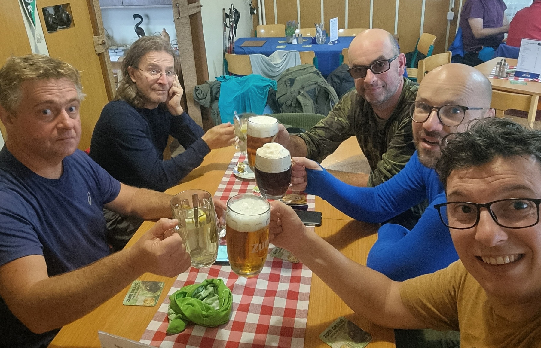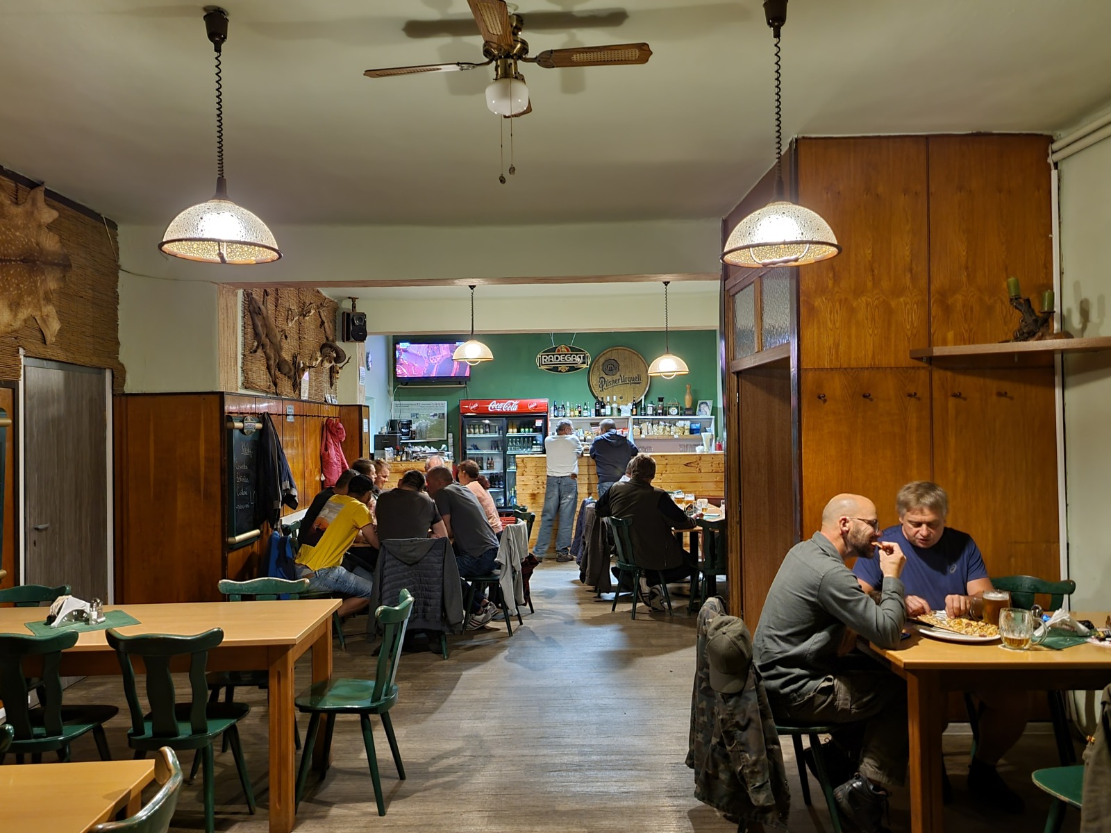 Zelená proto, že se tam scházeli trempi, myslivci a tak to prostě sedí. Vítá nás milučká zrzavá servírka a my objednáváme pivo, bramboráčky a pizzu. Večer se prostě daří se vším všudy. Oťase s Davidem, a vlastně všema ostatníma, co nejeli, se snažíme nasrat fotkama točeného pivka a dobrého dlabce. Daří se nám to až po odeslání fotky se samotnou usměvavou servírkou a my jsme spokojení. Kolem půl desáté odcházíme zpět na chatu a do hodiny ležíme.