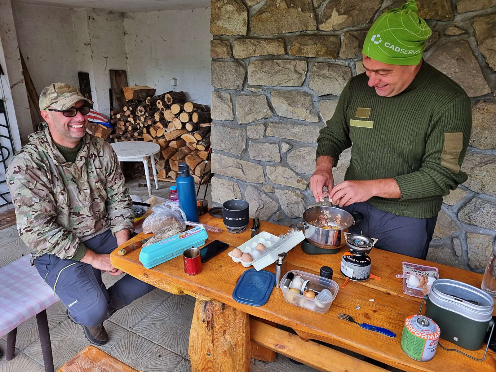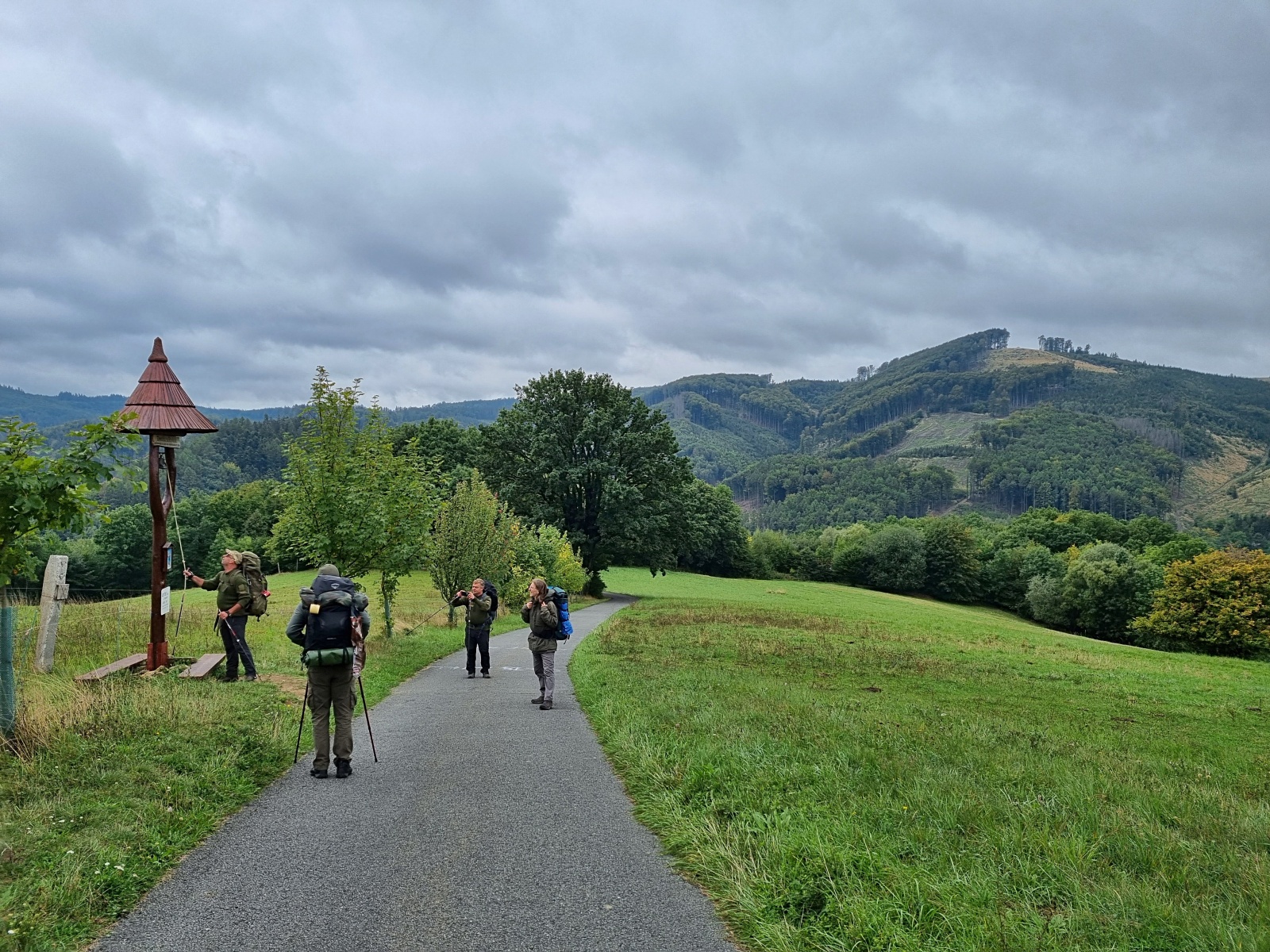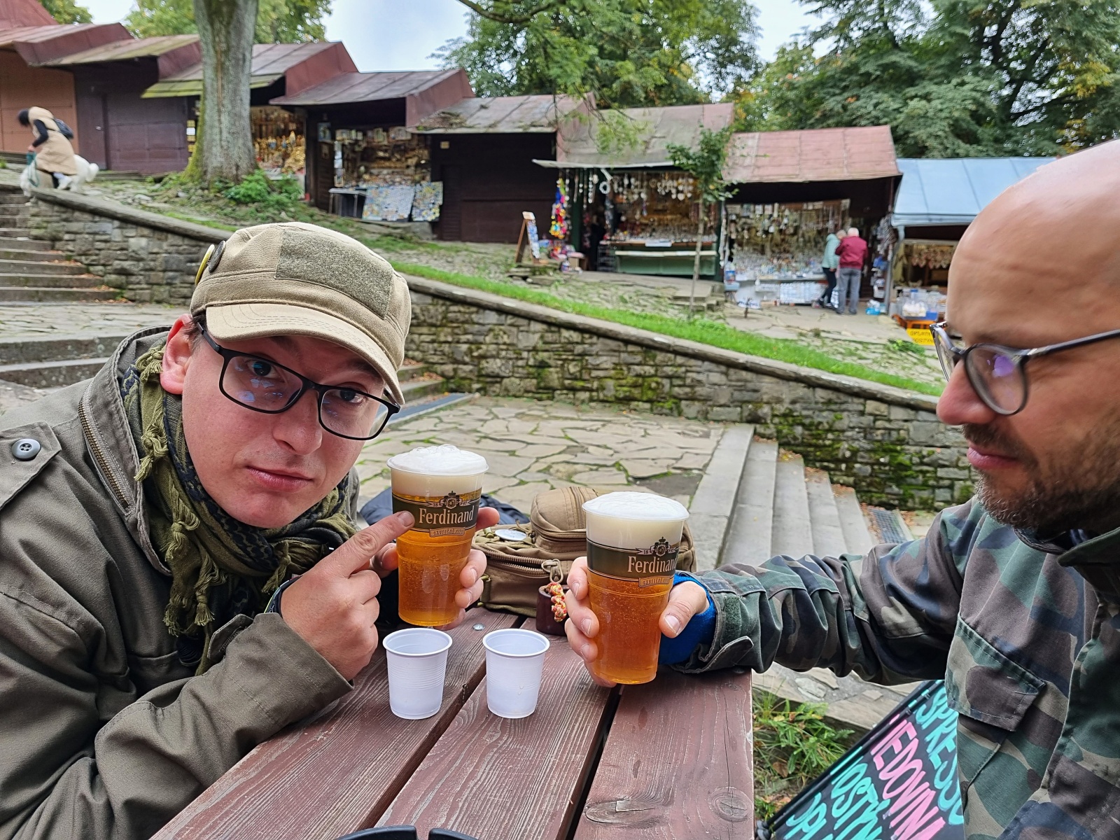 Spalo se krásně, vstáváme brzo a řešíme ranní procedury. Oťas s Davidem přijíždějí v osm, přesně dle slibu. Vytahuje propriety a probíhají tradiční sobotní smažená vajíčka. Snídáme, kocháme se výhledem a po kávě balíme saky paky. Nastupujeme na žlutou a víceméně pořád jenom stoupáme. V průběhu cesty se zastavujeme jen minimálně a první větší pauza probíhá na Hostýně. Na stánku se občerstvujeme, drahým polovičkám kupujeme perníková srdce a nad mapou přemýšlíme, kdeže to složíme dnes kosti.