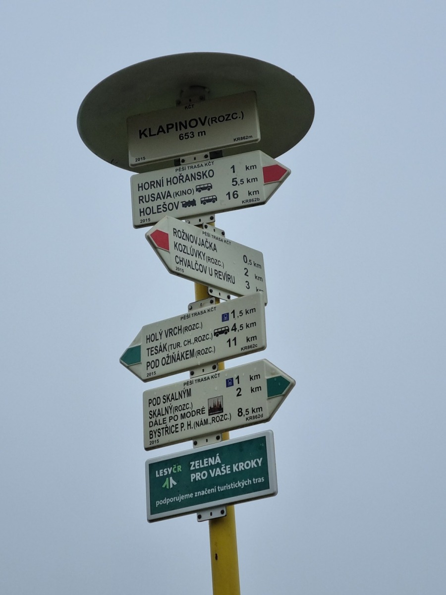 Z Klapinova po červené a neznačené zpět do Rusavy